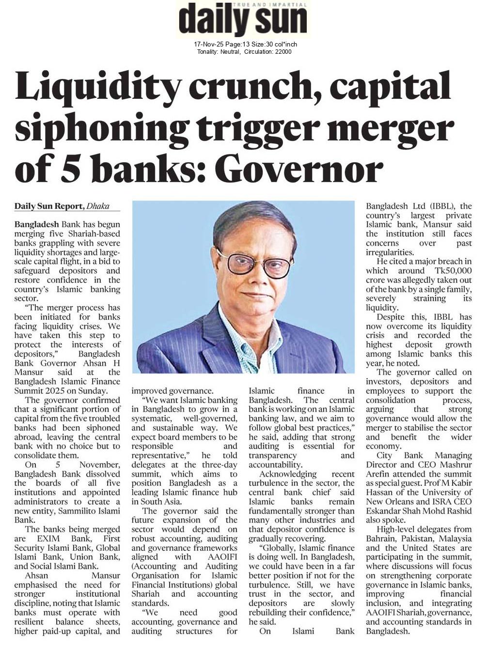 Liquidity crunch led to merger of five Islamic banks: BB governor